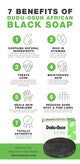Enjoy the ultimate luxury with our newest Dudu Osun African Black Soap. Specially formulated entirely from natural ingredients and herbs, this African black soap will have you feeling refreshed and silky smooth. Restores damaged skin and is helpful in healing chronic eczema, acne, freckles, and dark spots. Scented with osun (camwood extract), citrus juices, and native honey. With aloe vera and natural vitamins. Made in Nigeria. Approx. 5.25 oz. ALL NATURAL. The Dudu Osun soap bar is larger than the box which it is made for. These boxes may sometimes seem bent or damaged for this reason. Dudu Osun African Black Soap M-S501